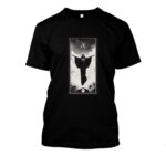 Camiseta de algodón 100% con un diseño inspirado en el misticismo del tarot. El estampado muestra una figura enigmática en tonos monocromáticos, con los brazos abiertos hacia el cielo entre nubes, transmitiendo poder y misterio. En la parte inferior aparece el número romano XIV, evocando las cartas clásicas, mientras que los símbolos gráficos añaden un aire ocultista y elegante. Una prenda de Heretic Ape que conecta moda, arte y esoterismo en una sola pieza.