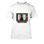 Camiseta de algodón 100% en color blanco con un diseño surrealista y retro. Al frente, un televisor antiguo enmarca la figura borrosa de un enigmático personaje con corona sobre un fondo de barras de color clásicas de señal de prueba. En la parte inferior del televisor, un texto en japonés dice: “テレビを調整しないでください” (Terebi o chōsei shinaide kudasai), que significa “No ajuste su televisor”. Una prenda que mezcla nostalgia televisiva y estética misteriosa, ideal para quienes buscan destacar con un estilo único y alternativo.